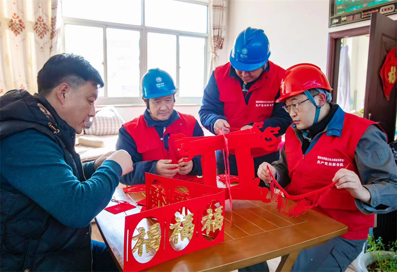 “王大哥,春節(jié)期間電取暖設(shè)備使用率提高,有用電問題隨時聯(lián)系我們。同時也給您送上春聯(lián)和福字,恭喜你們告別濃煙繚繞,又臟又嗆的燒煤時代,迎來了綠色溫暖過冬的新生活。”接過劉長渤手中的福字,王江華的心里和屋里一樣溫暖。(攝影/史文全)