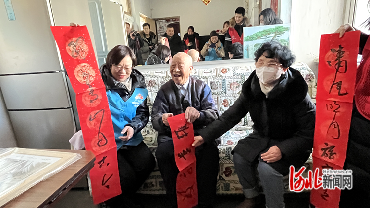 當(dāng)日上午,志愿者們看望了團(tuán)結(jié)路社區(qū)96歲高齡老兵白福山和石河鎮(zhèn)曉營(yíng)村殘疾人蘇麗瑩,為他們送去了米、面、油等慰問品及春聯(lián)。