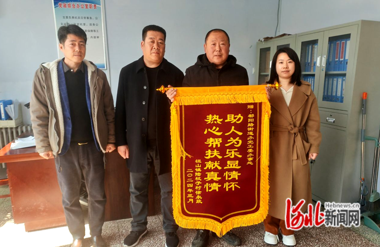 河北網(wǎng)訊(孟文靜)3月19日,秦皇島市青龍滿族自治縣祖山鎮(zhèn)陸杖子村村民徐永政將一面寫有“助人為樂顯情懷 熱心幫扶獻(xiàn)真情”的錦旗送到了都陽路街道。