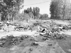 記者沿著綠地周邊走了一圈,看到每隔幾米,就會有零散的生活垃圾“掩映”在草叢中。當走到路口南側約50米處時,一條水泥小路延伸進了路東的一片空地內。在這片空地里,遍布碎磚石等建筑垃圾,只要從附近經過,都能看到這些明顯的垃圾。