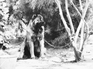 靈壽縣正南南大街與城北東路交口附近綠化帶內的大狗。