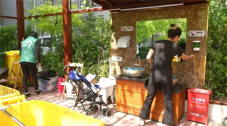 一個(gè)分揀箱,一副手套,一個(gè)夾子,對(duì)于垃圾沒有分類的居民,督導(dǎo)員現(xiàn)場(chǎng)幫助分揀分類。一排排紅、藍(lán)、黃、綠的分類垃圾桶,兩個(gè)干凈整潔的洗手池,旁邊還配備了干手器、洗手液等清洗用具,人們很難將這樣整潔干凈的環(huán)境與垃圾分類投放點(diǎn)結(jié)合在一起,但在現(xiàn)代城,垃圾分類已經(jīng)成為居民每天的必備工作。