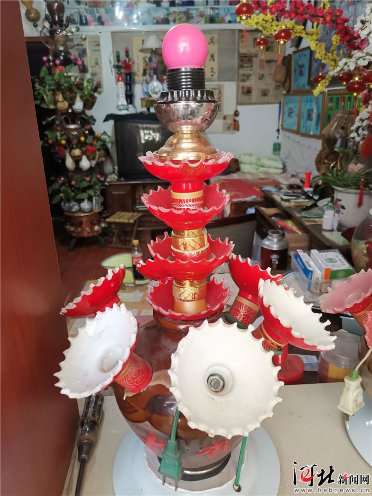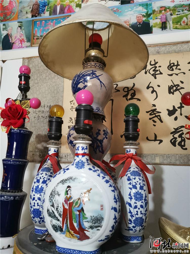 劉明錦老人 用空酒瓶制作的臺(tái)燈