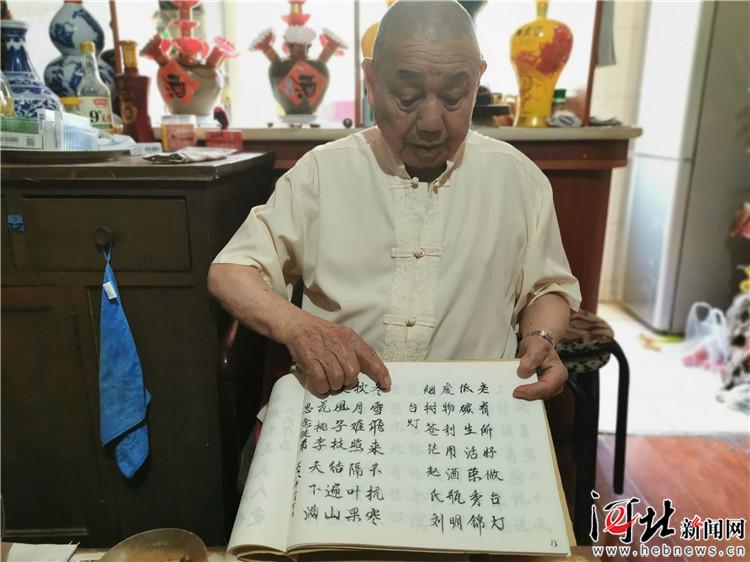除了手工制作外,劉大爺還特別喜歡寫詩,經(jīng)常用詩來抒發(fā)心情。因?yàn)樽约褐谱鞯木破抗に嚻反蟛糠质桥_(tái)燈,劉大爺特意寫了一首詩《臺(tái)燈》:“煙樹蒼茫趙氏劉,廢物利用酒瓶明。低碳生活榮秀錦,老有所好做臺(tái)燈!眲⒋鬆敻嬖V記者,這首詩也暗藏玄機(jī),“每句最后一個(gè)字連在一起,就是‘劉明錦燈’!
