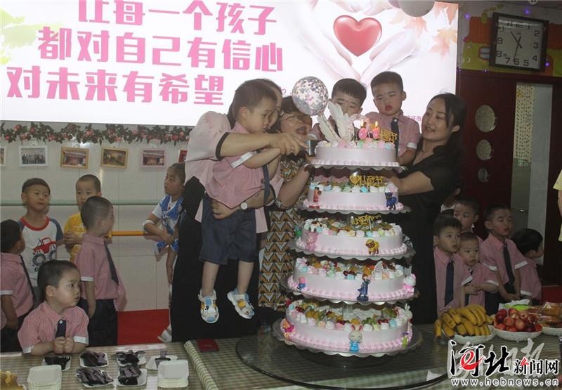 5月29日,在石家莊市社會福利院,愛心人士和孩子們一起切蛋糕。