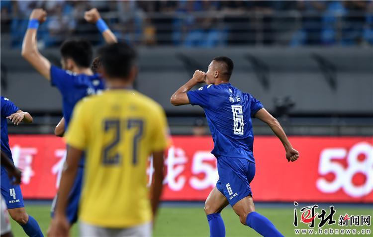 6月22日,石家莊永昌11號外援穆里奇慶祝進球。記者耿輝攝