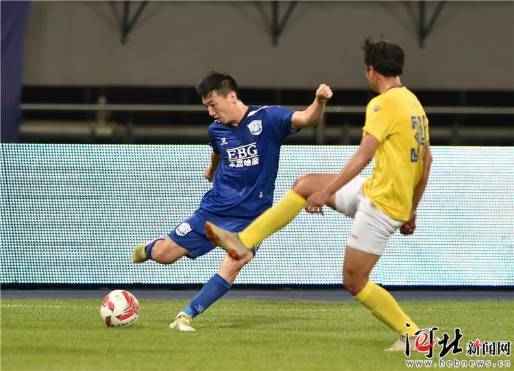 6月22日,石家莊永昌11號外援穆里奇(左一)射門瞬間。記者耿輝攝
