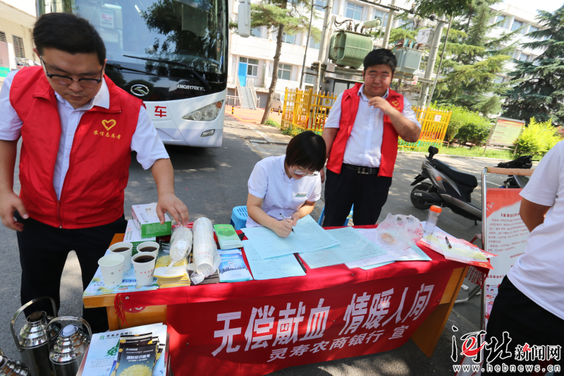 河北新聞網(wǎng)7月24日訊(通訊員陳鑫、高斐)今天,由靈壽農(nóng)商銀行、靈壽縣農(nóng)信青年志愿者協(xié)會、縣紅十字會共同開展的“無償獻(xiàn)血情曖人間”公益獻(xiàn)血活動在靈壽農(nóng)商銀行營業(yè)部門前舉行;顒又,包括領(lǐng)導(dǎo)班子成員在內(nèi)的30余名員工以及聞訊趕來的10余名愛心人士共同參與了無償獻(xiàn)血活動,其中2名員工捐獻(xiàn)了造血干細(xì)胞。