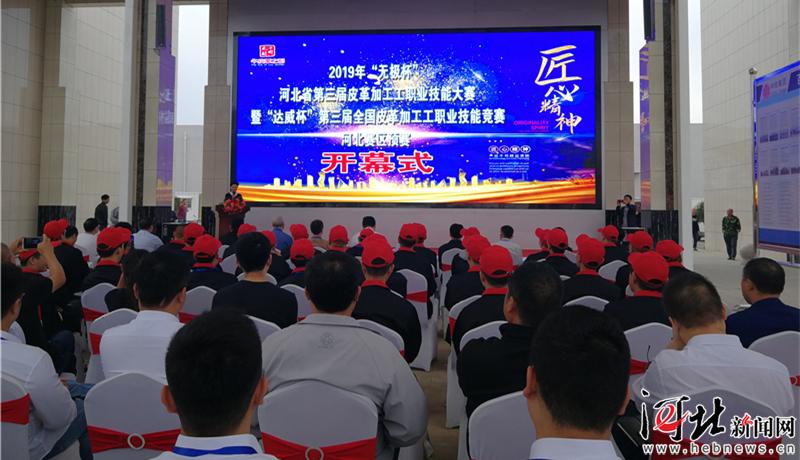 9月19日,2019“無極杯”河北省第三屆皮革加工工職業(yè)技能大賽暨“達威杯”全國皮革加工工職業(yè)技能競賽河北賽區(qū)預賽在無極縣舉行。圖為比賽開幕式現(xiàn)場。 通訊員甄建坡攝