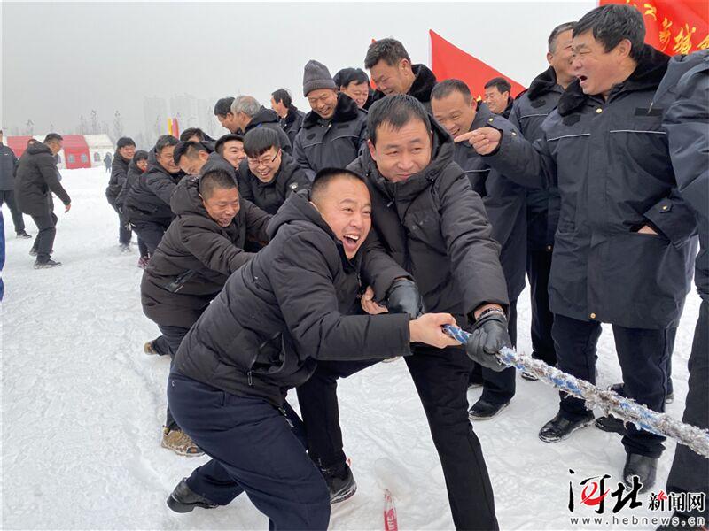 12月25日,正定縣首屆冰雪運(yùn)動(dòng)會(huì)暨正定冰雪節(jié)開幕。圖為雪地拔河項(xiàng)目現(xiàn)場。 記者吳培源攝