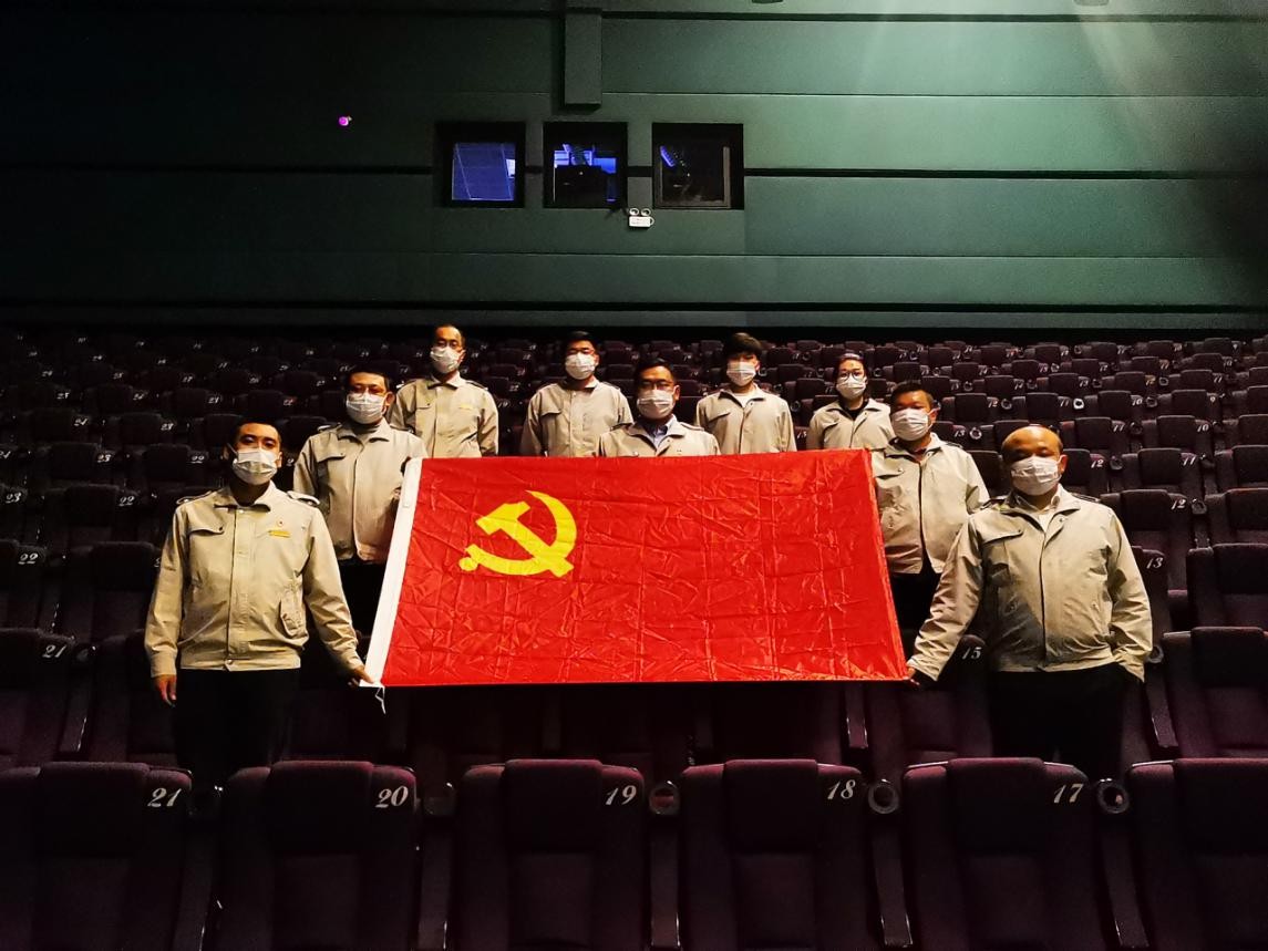 當天下午,中國建筑第二工程局北方公司石家莊經理部旭陽學府黨支部舉行黨日活動,組織施工一線的黨員代表在萬達影城觀看電影《金剛川》,并舉行觀影交流會。