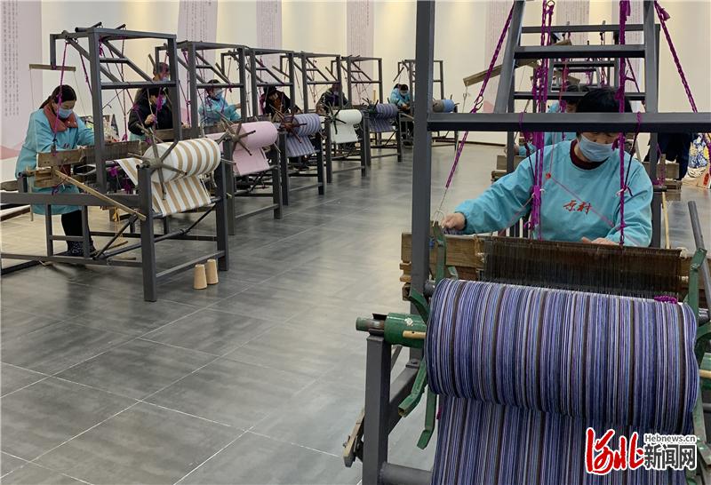 11月18日,石家莊市贊皇縣原村土布合作社里熱火朝天忙生產(chǎn)。