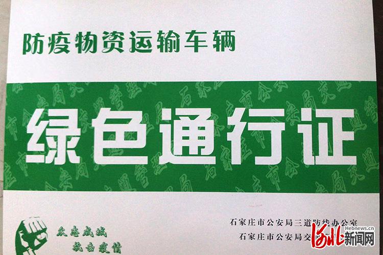 石家莊市為防疫物資運(yùn)輸車輛開具綠色通行證。圖片源自“市場(chǎng)保供群”