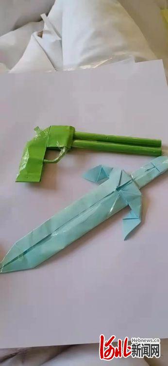 圖為小朋友制作的打敗怪獸的武器。南長街道供圖