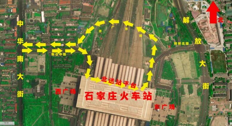 石家莊新客站區(qū)域目前的交通疏解方式為:從解放大街方向送站車(chē)輛,只能進(jìn)入火車(chē)站南二樓進(jìn)站平臺(tái),送站后車(chē)輛進(jìn)入中華大街駛出;從中華大街方向送站車(chē)輛,只能進(jìn)入火車(chē)站北二樓進(jìn)站平臺(tái),送站后車(chē)輛進(jìn)入解放大街駛出。