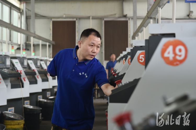 2021年5月13日,郭躍攀在數(shù)控機(jī)床前查看設(shè)備運(yùn)行工況,他說(shuō)這份工作讓他很有成就感。 河北日?qǐng)?bào)記者趙海江攝