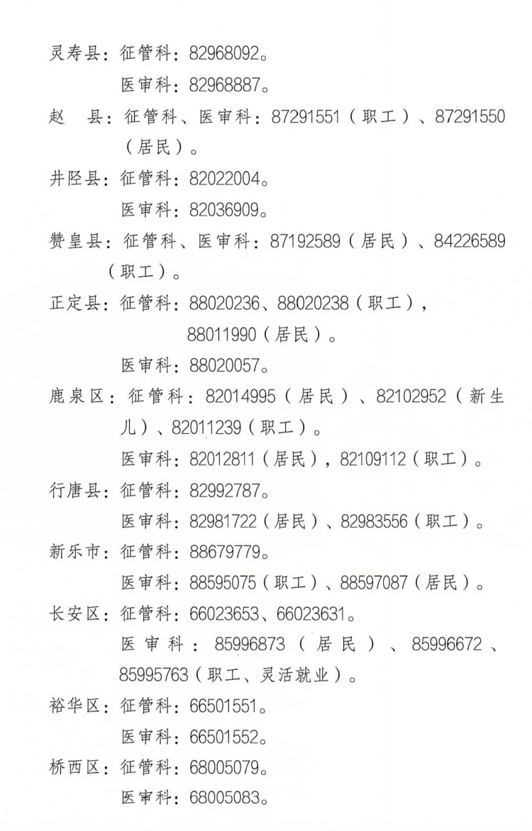 石家莊市各級(jí)醫(yī)保經(jīng)辦機(jī)構(gòu)聯(lián)系電話: