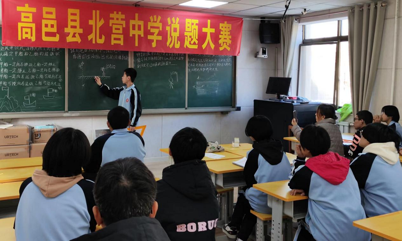 河北網(wǎng)訊(通訊員 趙雪冬) 近日,高邑縣北營(yíng)中學(xué)舉行學(xué)生說(shuō)題大賽,活動(dòng)依據(jù)課程標(biāo)準(zhǔn)規(guī)定培養(yǎng)目標(biāo),選取有代表性的題目,由學(xué)生來(lái)表述題目所考查的相關(guān)知識(shí)點(diǎn),并結(jié)合解答中需注意的問(wèn)題,向在場(chǎng)師生進(jìn)行講解。