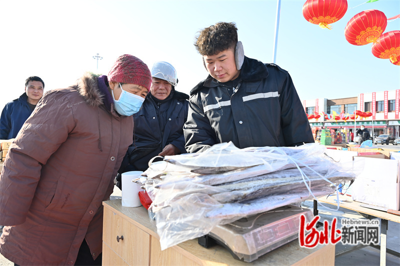 1月25日,在石家莊國際農(nóng)產(chǎn)品批發(fā)交易中心首屆“年貨節(jié)”上,攤主正在給顧客稱帶魚。河北日報記者張曉超攝