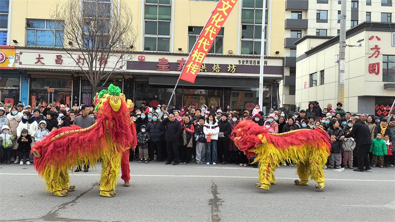 活動現(xiàn)場鑼鼓喧天、熱鬧非凡,舞龍、傳統(tǒng)武術(shù)、二貴摔跤等傳統(tǒng)民俗節(jié)目輪番上演,處處洋溢著喜慶歡樂的節(jié)日氛圍。