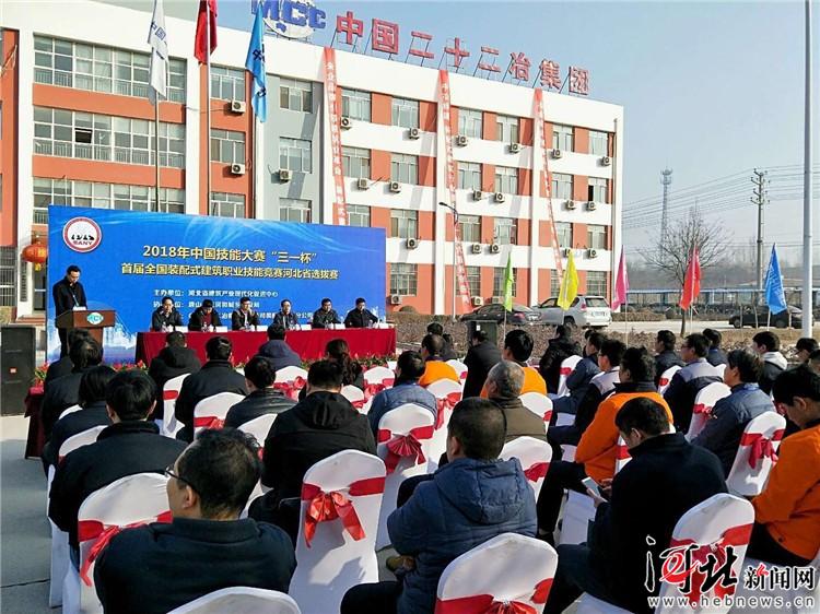 2月23日,2018年中國技能大賽“三一杯”首屆全國裝配式建筑職業(yè)技能競賽河北省選拔賽在中國二十二冶國家裝配式建筑產(chǎn)業(yè)基地舉行。圖為比賽現(xiàn)場。