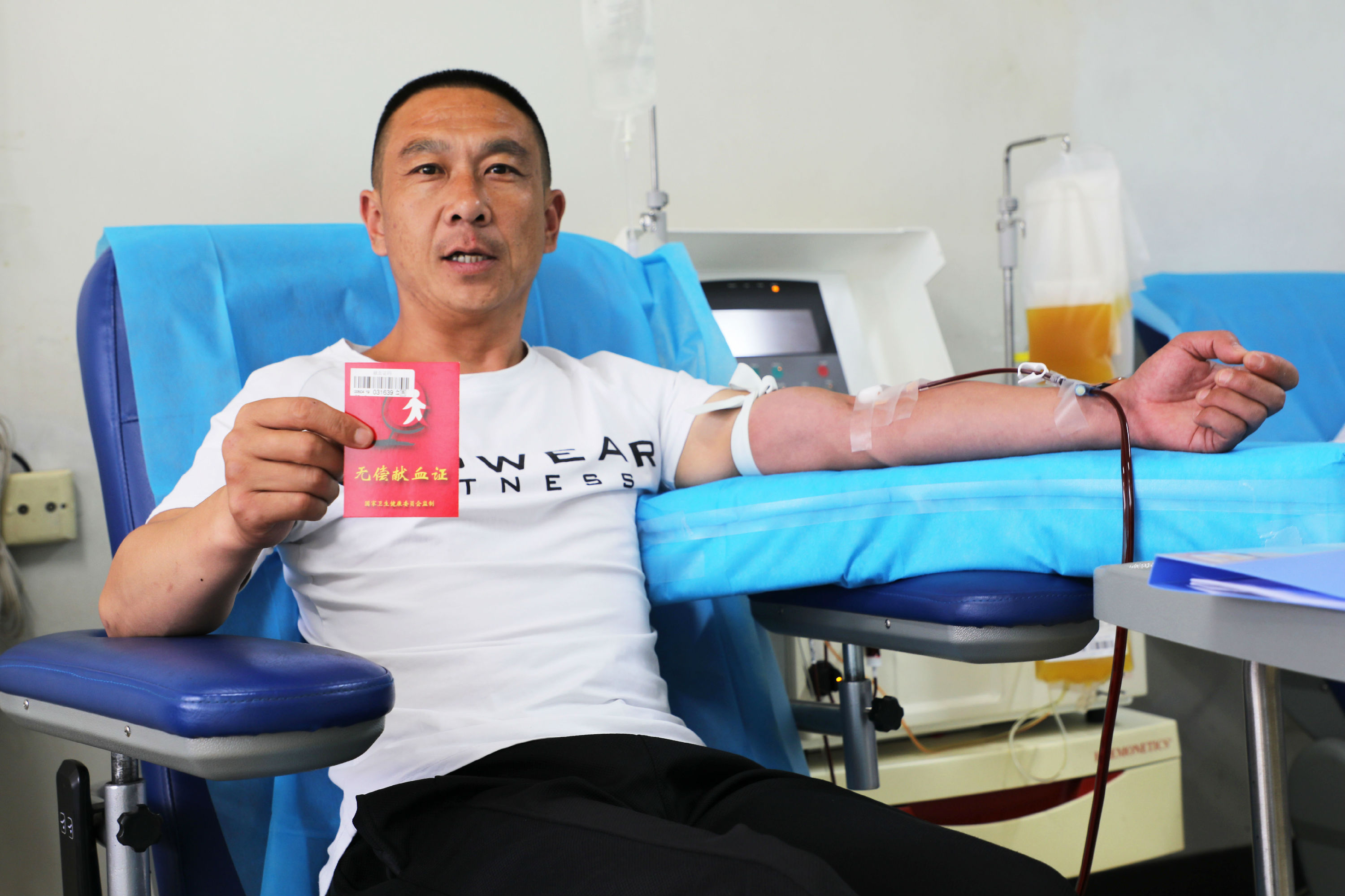 談起第一次獻(xiàn)血,42歲的熊曉猛記憶猶新。2006年4月的一天,在唐山抗震紀(jì)念碑廣場(chǎng)附近游玩時(shí),熊曉猛看見(jiàn)獻(xiàn)血車上懸掛著急需AB型血的條幅。當(dāng)兵體檢時(shí)知道自己是AB型血,他就抱著試試看的想法來(lái)到獻(xiàn)血車上。經(jīng)化驗(yàn)血液合格,他成功進(jìn)行了第一次獻(xiàn)血。獻(xiàn)血過(guò)程中,工作人員介紹說(shuō)半年獻(xiàn)一次血不僅對(duì)身體沒(méi)有損傷,還有益處。從那時(shí)起,熊曉猛正式開(kāi)啟了自己的獻(xiàn)血?dú)v程。