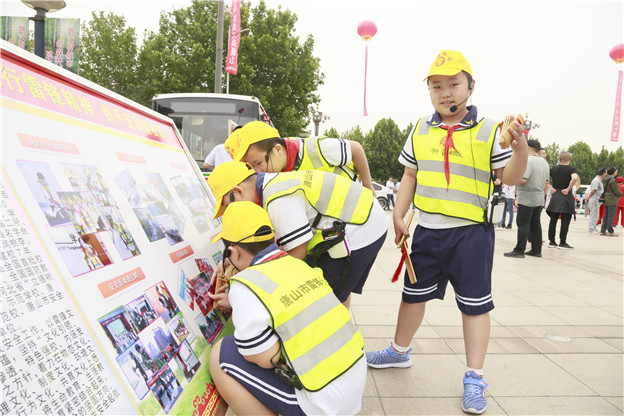 2019年6月16日上午6時(shí),唐山市抗震紀(jì)念碑廣場(chǎng)上人頭攢動(dòng),一塊塊五顏六色的宣傳展板有序排列,一輛輛滿(mǎn)載宣傳資料的汽車(chē)陸續(xù)駛?cè)霃V場(chǎng),身著黃色志愿者服裝的安全生產(chǎn)志愿者們與現(xiàn)場(chǎng)參展咨詢(xún)?nèi)藛T一道忙碌著將長(zhǎng)桌、資料、服裝和展牌從車(chē)上卸下,整齊擺放在規(guī)定的位置。上午8:00整,唐山市2019年“安全生產(chǎn)月”宣傳咨詢(xún)?nèi)栈顒?dòng)暨“安全進(jìn)萬(wàn)家,幸福你我他”主題志愿服務(wù)活動(dòng)啟動(dòng)儀式正式啟幕。