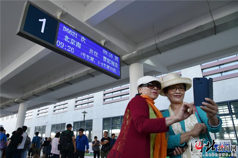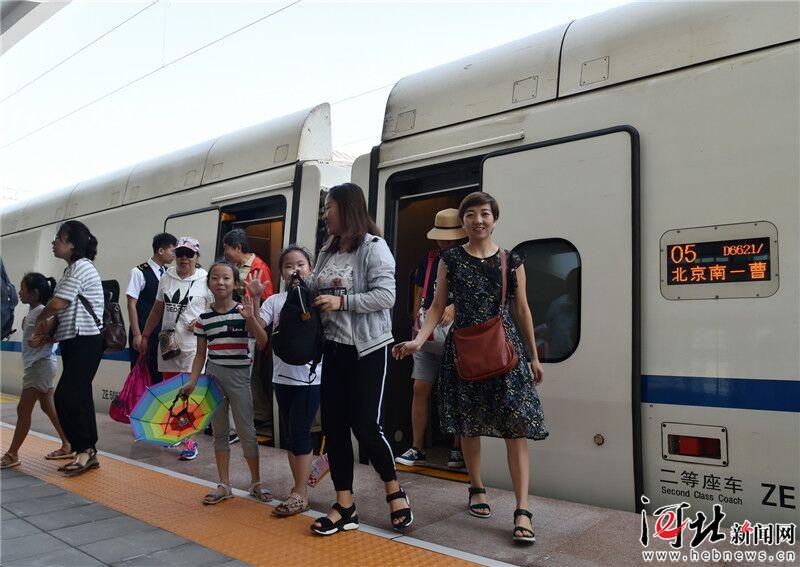 隨著D6621次動(dòng)車組列車車廂門緩緩打開,來自北京的數(shù)百名游客紛紛下車,感受曹妃甸這座濱海城市的魅力。