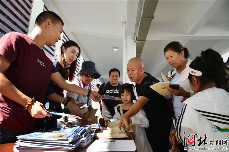 8月21日,工作人員為游客發(fā)放曹妃甸旅游地圖和旅游項(xiàng)目推介手冊。 記者趙海江攝