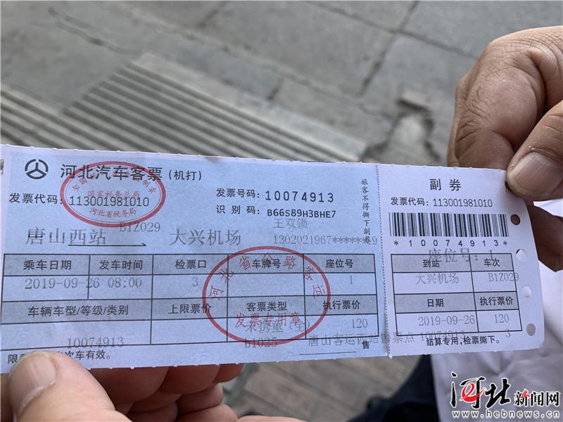 9月26日,唐山至大興國(guó)際機(jī)場(chǎng)客運(yùn)專(zhuān)線(xiàn)開(kāi)通。圖為乘客展示首發(fā)專(zhuān)線(xiàn)車(chē)票。