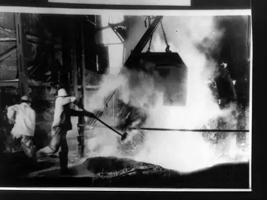 僅僅在震后28天,河鋼唐鋼職工王慶利和工友,就煉出了震后第一爐鋼,并為它取名為抗震“志氣鋼” 圖片來源:新華社