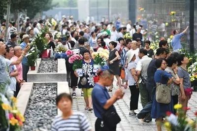 市民在地震紀(jì)念墻前祭奠遇難的親人。新華社記者牟宇攝