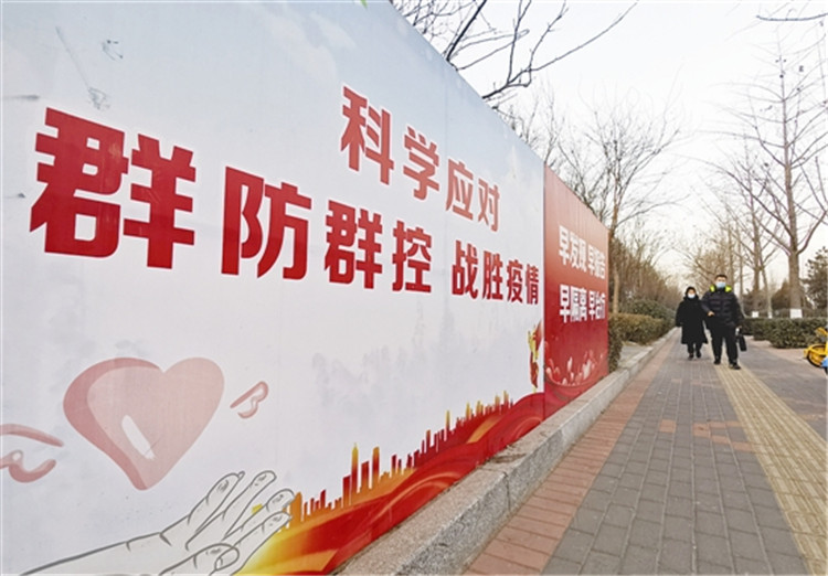 1月13日,市民佩戴口罩從疫情防控標語牌前經過。連日來,唐山市各個街道、社區(qū)通過懸掛橫幅、豎立標牌或LED電子屏播放等方式宣傳疫情防控政策,普及疫情防控科學知識,營造了群防群控的良好氛圍。記者呂光宇攝影報道