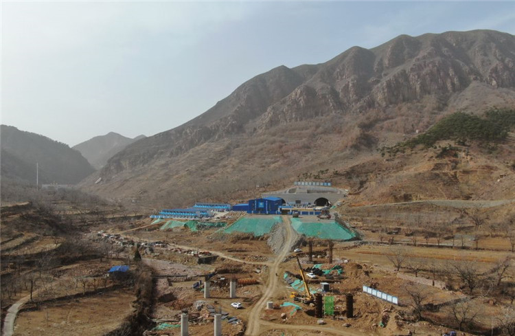 3月16日,工人在遷安市大五里鄉(xiāng)境內(nèi)的京秦高速公路遵(遵化)秦(秦皇島)段干柴峪隧道建設(shè)工地施工(無人機照片)。新華社記者楊世堯攝