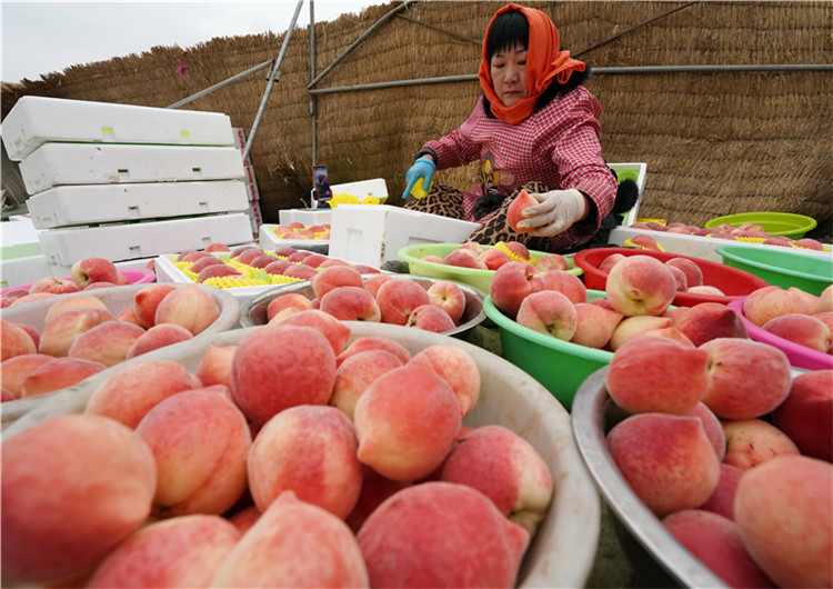 3月18日,樂亭縣新寨鎮(zhèn)大港村一位農(nóng)民將剛采摘的鮮桃裝箱。