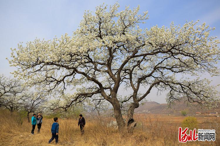2021年4月5日,游客在唐山市遷西縣新莊子鄉(xiāng)賞古樹梨花。