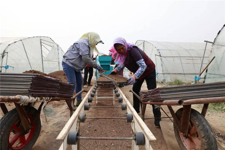 4月3日,河北省唐山市豐南區(qū)大新莊鎮(zhèn)慶國水稻種植農(nóng)民專業(yè)合作社的工人在篩選育苗用土。新華社發(fā)(李秀清攝)