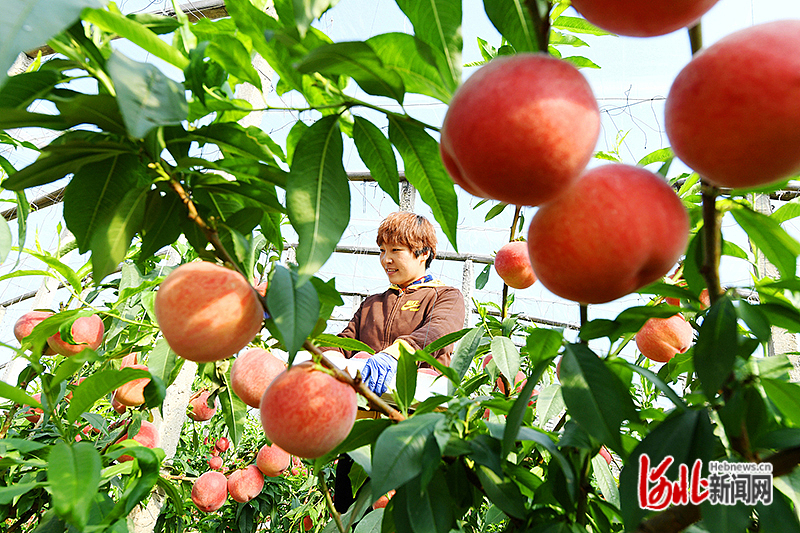 楊家埝民俗村的春桃熟了,一個(gè)個(gè)鮮紅的模樣在碧葉的映襯下,像面目含羞的姑娘,香氣濃郁……