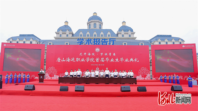 河北網(wǎng)訊(河北日報(bào)記者李寶發(fā))渤海細(xì)浪拍岸,校園強(qiáng)國情濃。6月28日上午,渤海灣畔,北京曹妃甸國際職教城,唐山海運(yùn)職業(yè)學(xué)院迎來首個(gè)收獲季,并通過一場盛大的現(xiàn)場直播畢業(yè)典禮,匯聚起百萬人次圍觀的祝福,歡送首屆1944名畢業(yè)生揚(yáng)帆起航、逐夢星辰大海。