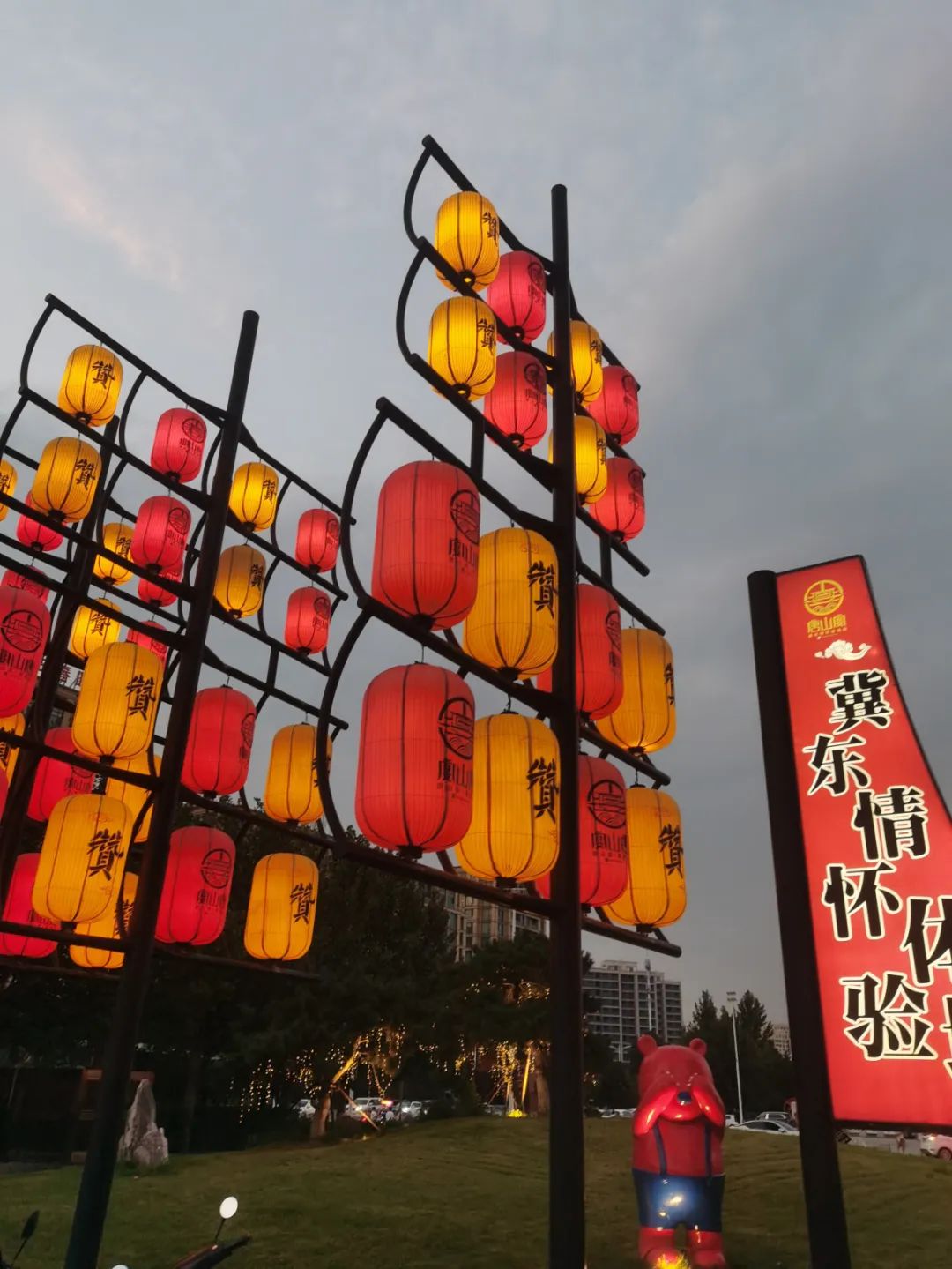 晚上六點,到達(dá)“唐山宴”西門,高大氣派的門樓引人注目。門前兩邊紅燈高掛,讓人頓感溫馨,富含生活氣息的雕塑展示著傳統(tǒng)美食的制作場景。吹糖人、糖葫蘆、爆米花等等,栩栩如生,勾起很多人往日回憶。