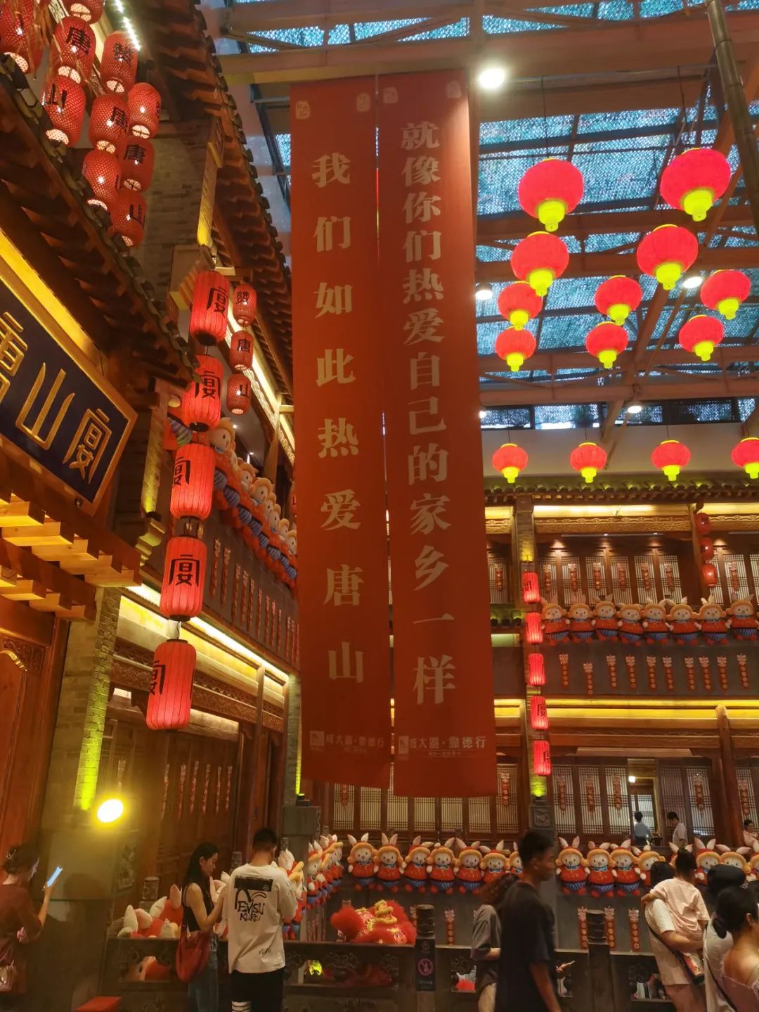 乘電梯上樓,空中飄下兩幅長長的豎幅,印著過目難忘的語言:“我們?nèi)绱藷釔厶粕,就像你們熱愛自己的家鄉(xiāng)一樣”。瞬間拉近了人的距離,不管是本地人,還是外來游客,走進(jìn)“唐山宴”的一刻,已經(jīng)都融進(jìn)濃烈的情懷之中。