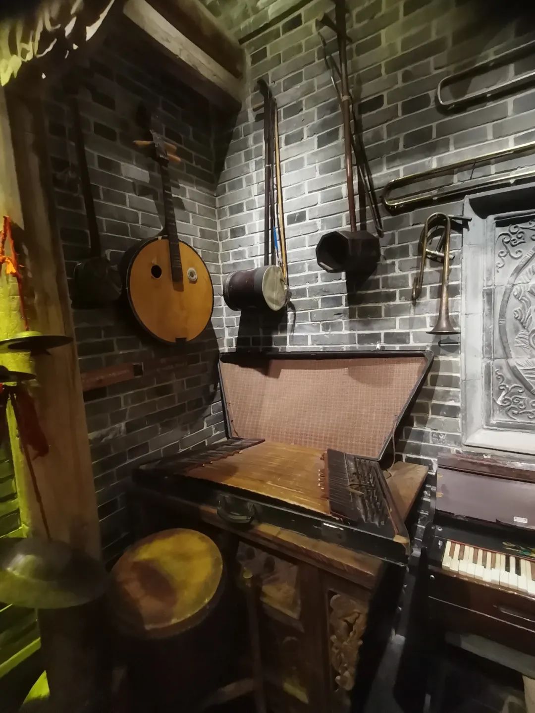 二樓,與一樓截然不同。依次是民俗老物件展區(qū)、百姓府邸民俗院落、燕山書院、祈福長廊、撒歡兒樂園、遙記圖書館、八旗貝勒爺宮廷火鍋七大區(qū)域。一件件熟悉而又親切的農(nóng)具,一個個別具不同的院落、一排排的民間樂器,都在傳遞著鄉(xiāng)情鄉(xiāng)誼。