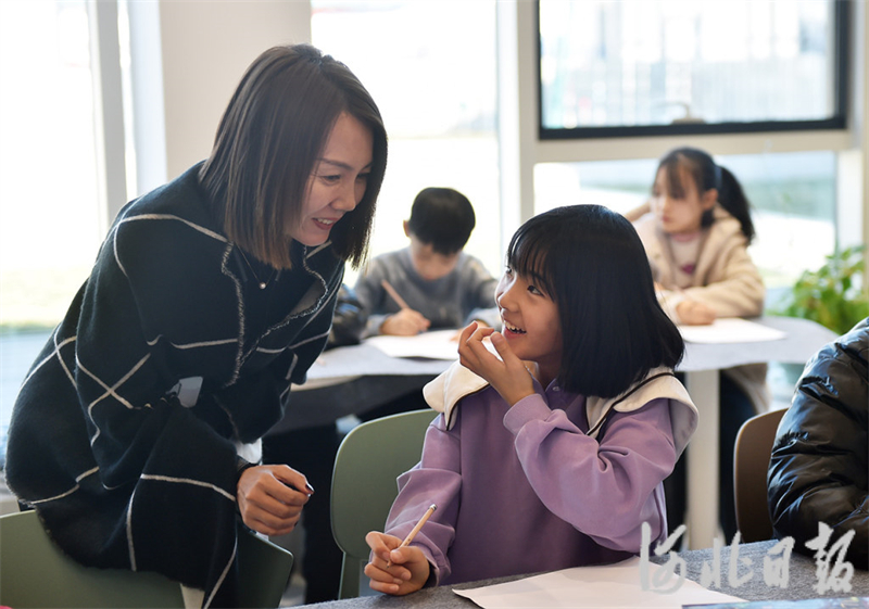 12月3日,姜玉嬋在逐光公益圖書館和小讀者交流學(xué)習(xí)心得。