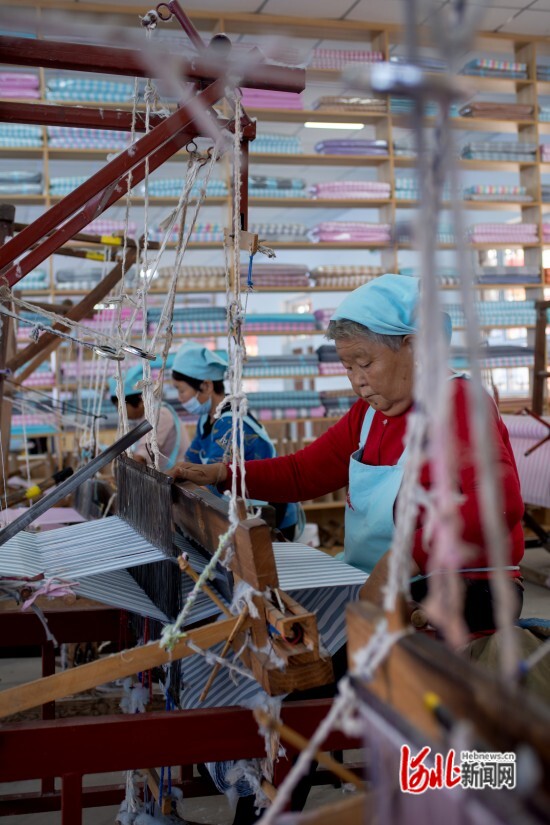 “自從有了‘繡娘手工坊’,我每天都到這里織織布,一個(gè)月下來(lái)能落個(gè)一千五六百元!10月31日上午,71歲的“繡娘”付建英說(shuō),“趕上好時(shí)代,不愁吃、不愁穿,連待帶玩織個(gè)布還能賺個(gè)零花錢,忒實(shí)舉(‘實(shí)舉’,音,唐山話,知足的意思)!