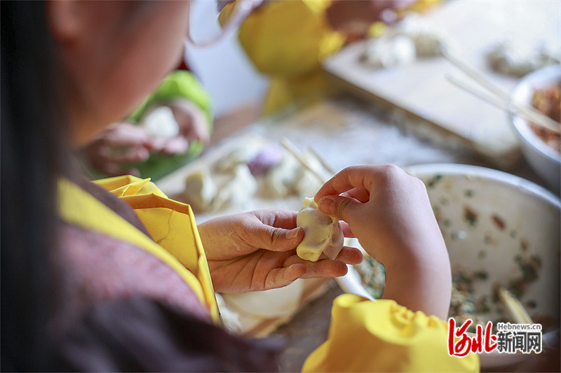 唐山市豐南區(qū)胥各莊鎮(zhèn)蠻子坨村村民小朋友在包餃子。