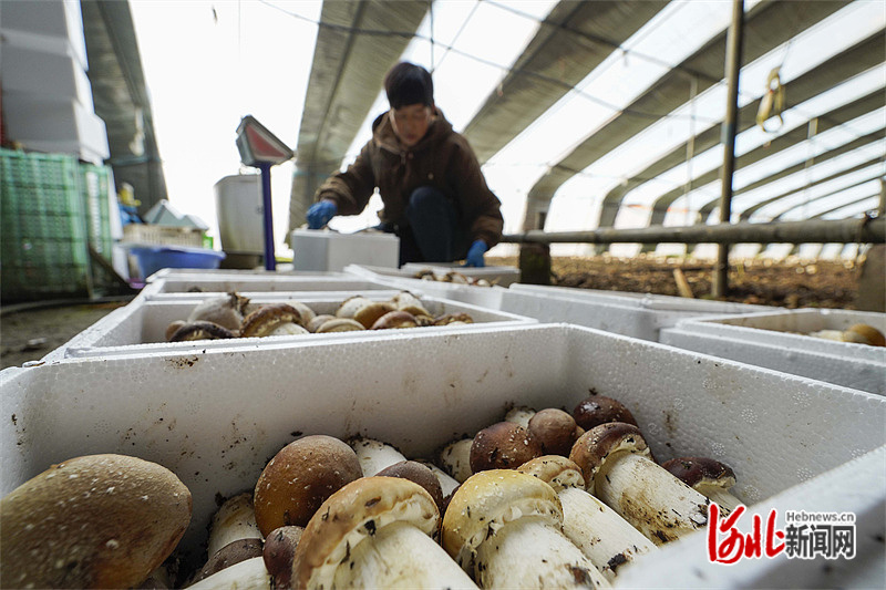 春節(jié)前夕,河北省遵化市平安城鎮(zhèn)農(nóng)民種植的大棚赤松茸迎來收獲季,農(nóng)民搶抓農(nóng)時采摘、外運(yùn),供應(yīng)春節(jié)市場。 通訊員劉滿倉攝影報(bào)道