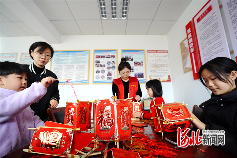 圖為活動現(xiàn)場工作人員和孩子一起制作燈籠。通訊員侯亞婷攝
