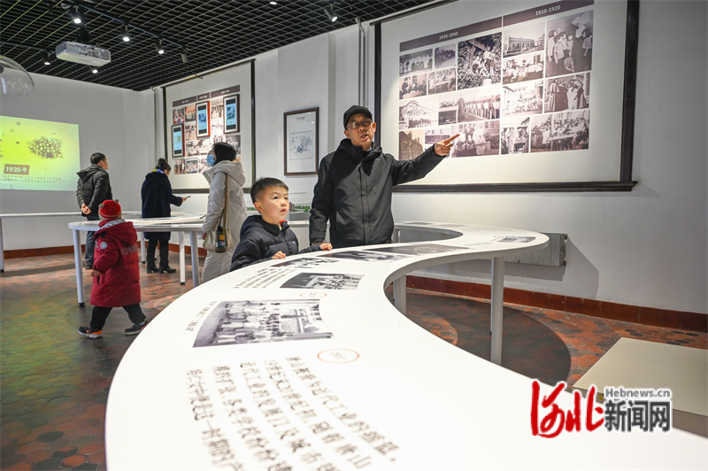 圖為培仁歷史文化街培仁教育記憶館內,一名游客帶著自己的孫子參觀,并講述歷史知識。郭寶強攝