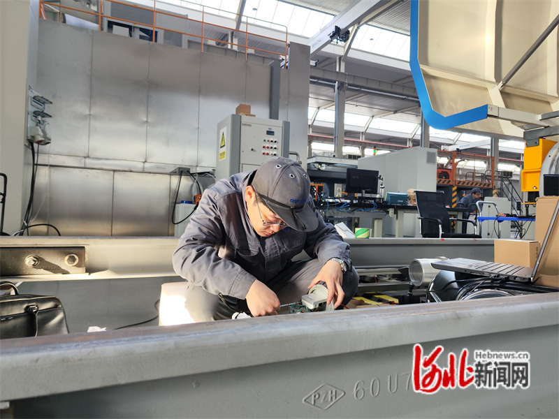 3月8日,在鷹眼智能機(jī)器視覺應(yīng)用智能裝備產(chǎn)業(yè)化基地,河北鷹眼智能科技有限公司總經(jīng)理?xiàng)顕蚺c技術(shù)人員一起,對新一代型鋼檢測機(jī)器人進(jìn)行測量參數(shù)測試。