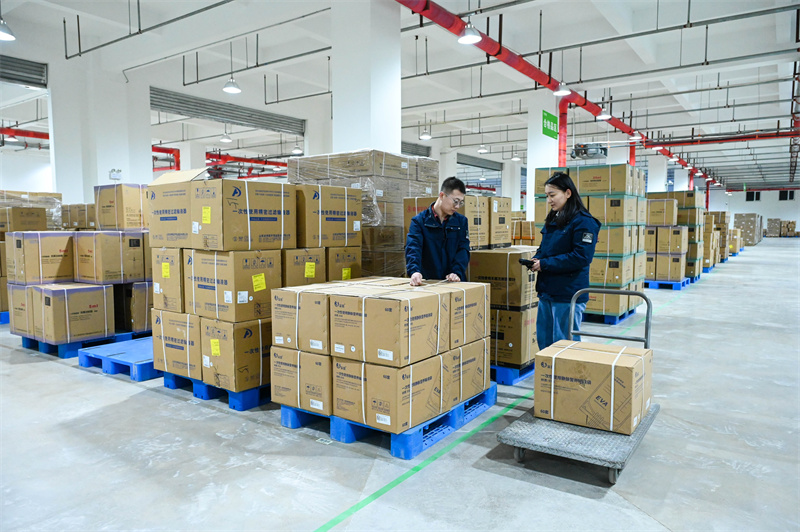圖為3月11日,企業(yè)物流倉儲基地內(nèi),工作人員正在對醫(yī)療器械進(jìn)行掃碼出庫。郭寶強(qiáng)攝